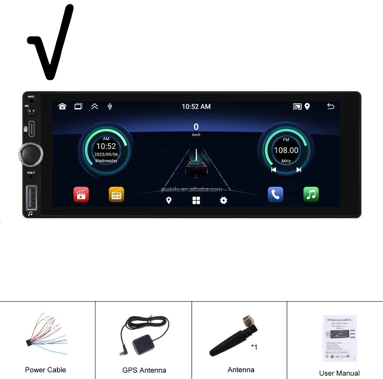 ANDROID 1DIN Universel 2GB/64GB